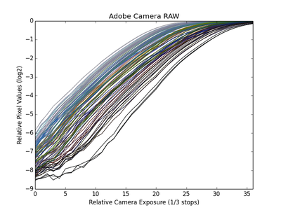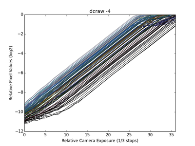 We can see at a glance that the procedure described above does provide a completely linear response (within the limits of noise and colour clipping), and that Adobe Camera RAW bakes in a gamma curve.