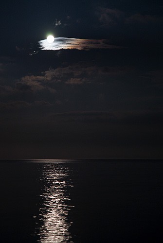It's da moon! I had a few dozen more impressive looking shots, but they all looked like daylight. So I say boourns to that.