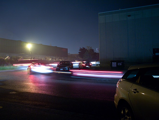 Here we see the cars speeding to leave the parking lot after the fireworks on Canada Day.