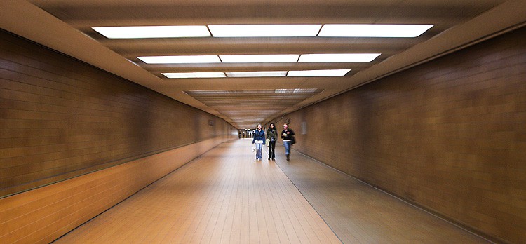 Walking down the big ass corridor at Spadina station on the way to the Greenroom. I guess I'll take back all that stuph about you 2 walking so slow, cause I wouldn't have been able to capture this if I couldn't get so far ahead.