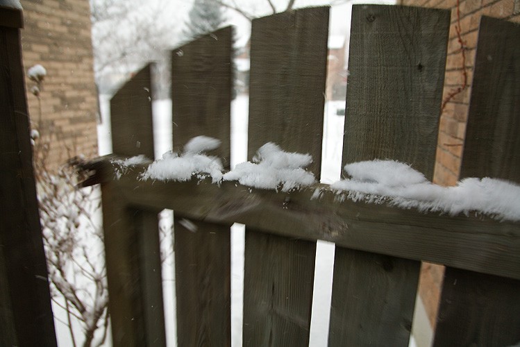 I ran outside when it was snowing so very very hard... But I just didn't get there fast enough. Instead, here is me opening the gate really fast, trying to make the snow fly around. :P