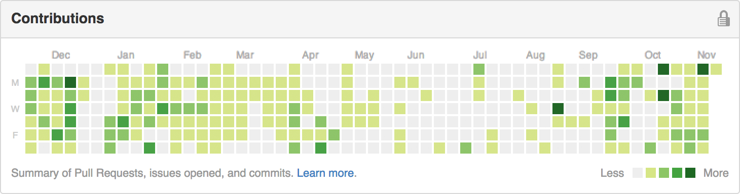 Having used GitHub as the primary code host for multiple full-time jobs, and a few growing open-source projects, I now believe that these calendars introduce, for me, two negative effects that vastly outweigh their benefits.