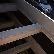 This is the view looking down the ramps in the Student Services parking garage. The hardest part about this one was simply waiting for a vehicle to come all the way to the top level, despite the fact that there were many spaces left on even the 2nd and 3rd. What I really don't like about this one would be those little orange lane markers. When I get home (and I have my tablet) I will consider removing them... but not just yet. edit: Since posting this image I have removed the pylons I spoke of. It looks so much cleaner now.