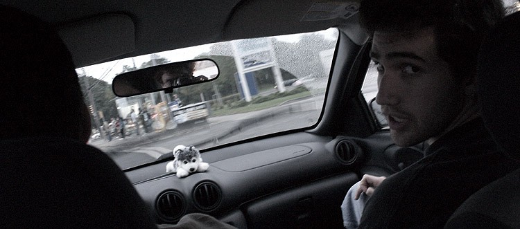 So this is Josh. I was just trying to get a nice shot out of the windshield with myself in the rear-view mirror... But he turned around with a goofy look, so I might as well take a picture, eh?