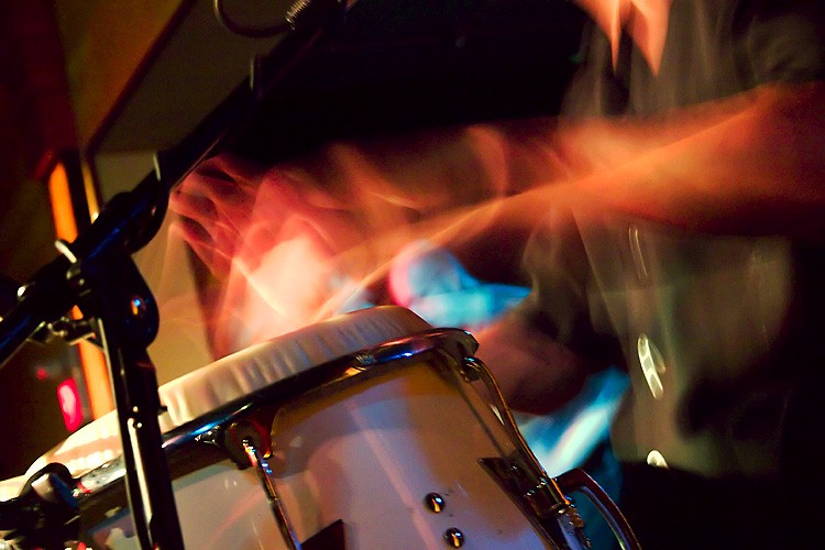 We started shooting for our documentary today at Lula Lounge downtown. I rought my camera along in order to get some nice shots that me might be able to use for cutaways, and such. This is is of the hands of one of the percussionists (the other being the guy we are documenting.) We may use this guys hands for the other guy... Just don't tell any one.