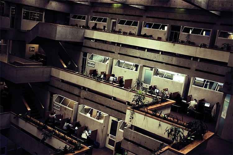 This is from the same library as yesterday's shot. It's from the 5th floor of the atrium in Scott.