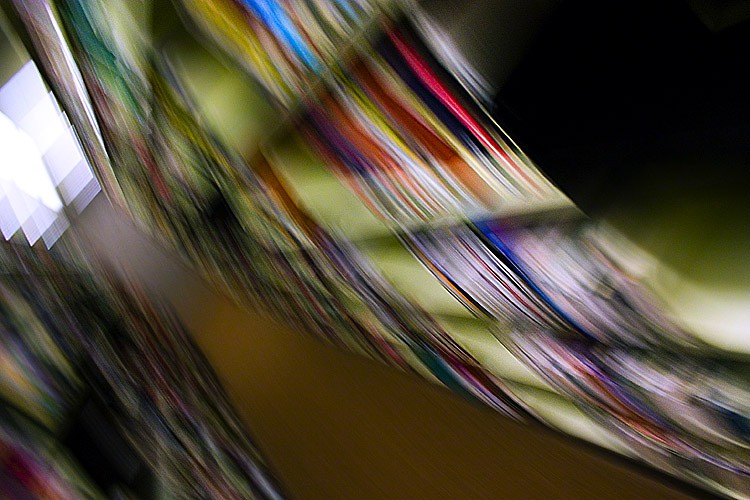 So this is some random part of the stacks on the 5th floor of Scott Library at YorkU. Dragging the shutter is lots of fun sometimes, but it sure does take a LOT of frames to get it just right.