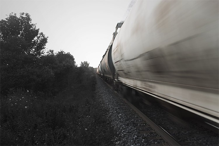 The real challenge on this one was getting the train blurred, while not blowing out the sky (due to slowing shutter speeds.) But I did blow out the sky... Damn. Fixed it okay, I guess. I went and pulled out all the colour (you are using the channel mixed to convert to monochrome, right?) except for a little hint of it on the train. Dunno why... I just like it.