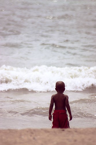 On really long lenses: sometimes 300mm of telephoto power is for more than just sniping. I could have easily walked right behind this kid and taken a photo, but it would not have the same feel that this one does. The long lens compresses the depth in the image, and makes the water look a lot larger than it would in a normal focal length. But this length does come with other costs. If you ever consider buying a really cheap 70-300mm lens, think again. You do get what you pay for, and that most often is a lot of blooming. I tried to cover it up by screening a blurred high-pass to make it look a bit dreamier. Did it work out?