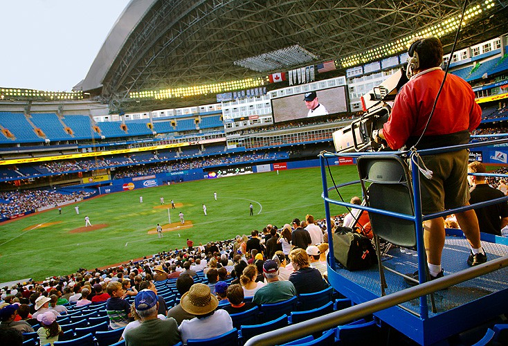 Tess scored us some free tickets to a Jay's game, and they were pretty damn fine seats too. I want one of those cameras... tear
