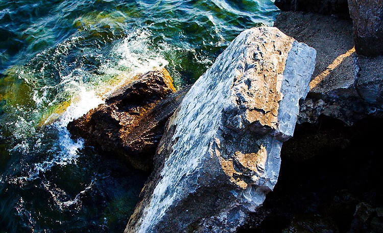 Small waves crashing on the break water at Ontario Place while waiting for the Symphony of Fire to begin.