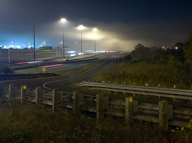 By the time I had retrieved my camera and returned to the highway, the fog has begun to retreat. However I do believe that it looks quite a bit cooler looking at it from the outside, rather than everything being completely obscured from the inside.