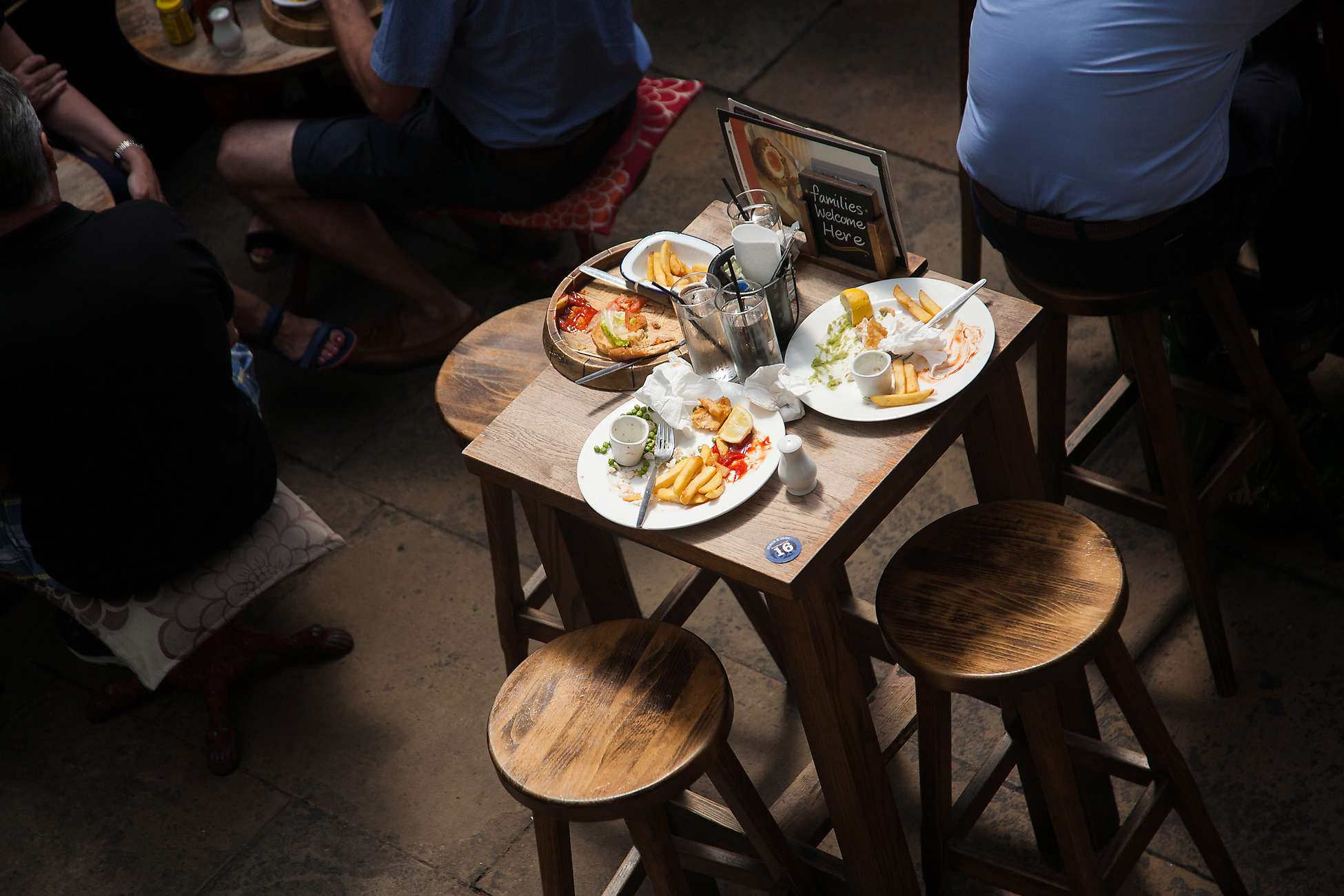 A gorgeous spotlight fell on this table in the lower level of a market in Covent Gardens (in London, UK); I think it really brings the subject alive, even if it is scraps of lunch.